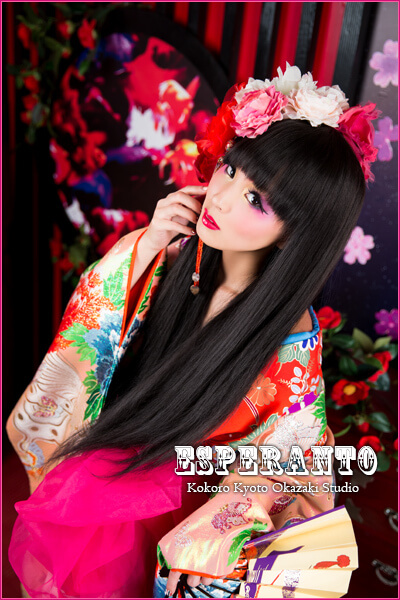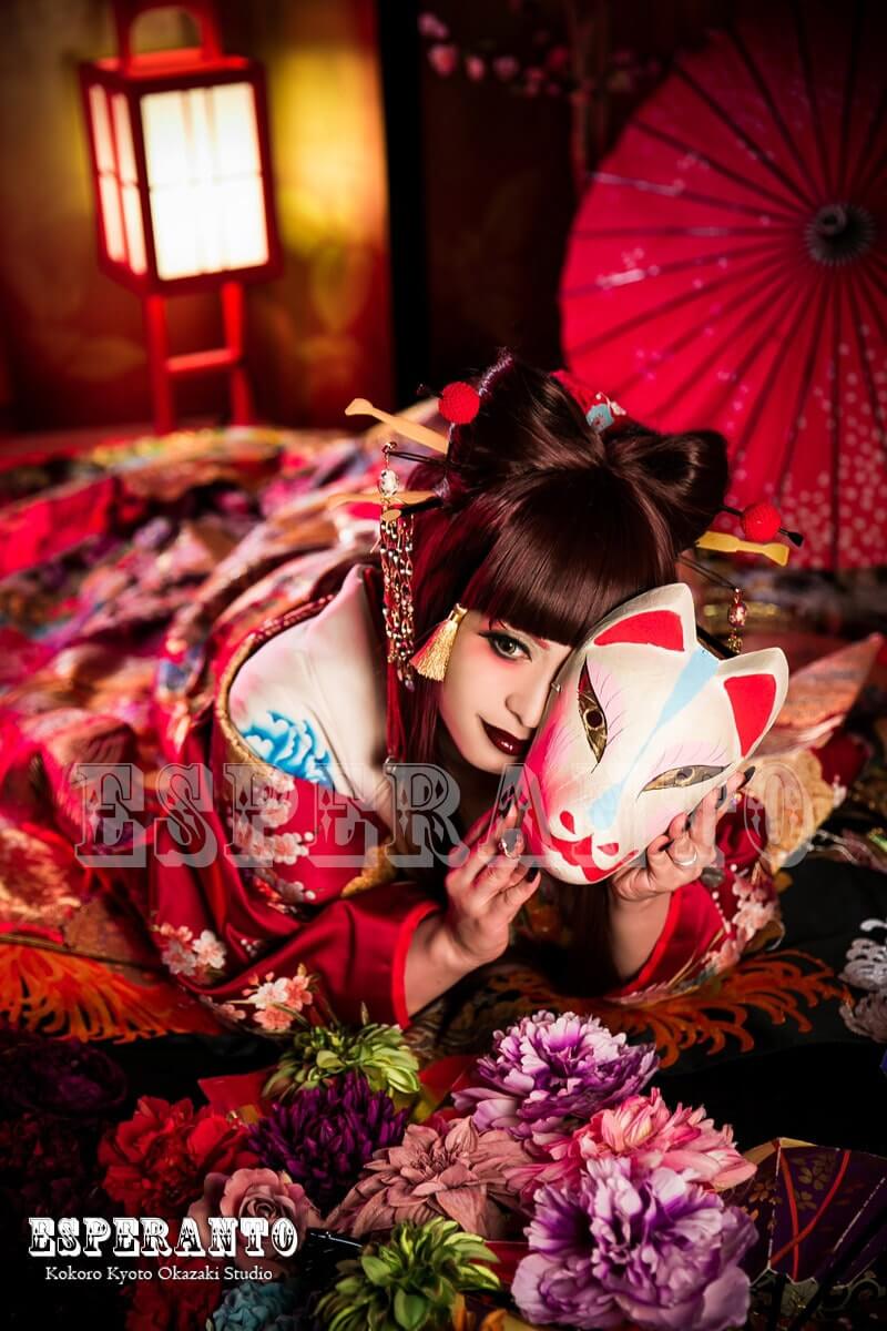 ロングウィッグ・ショートウィッグ・ハーフウィッグ、ストレートやカールスタイルなど、長さから髪色まで様々なウィッグで花魁に変身できます。普段の印象とガラリと変化させたい方にぴったりのアレンジです。地毛を活かすなら、長さやボリュームの出るハーフウィッグを。フルウィッグなら黒色ロングでヘルタースケルター風に。茶髪カールでお人形さんのように。シルバーウィッグで神秘的に。自由自在に、なりたい雰囲気により近づける事が出来ます。「花魁体験してみたいけど、ショートカットだし・・・」そんな方も楽しめるスタイルです。